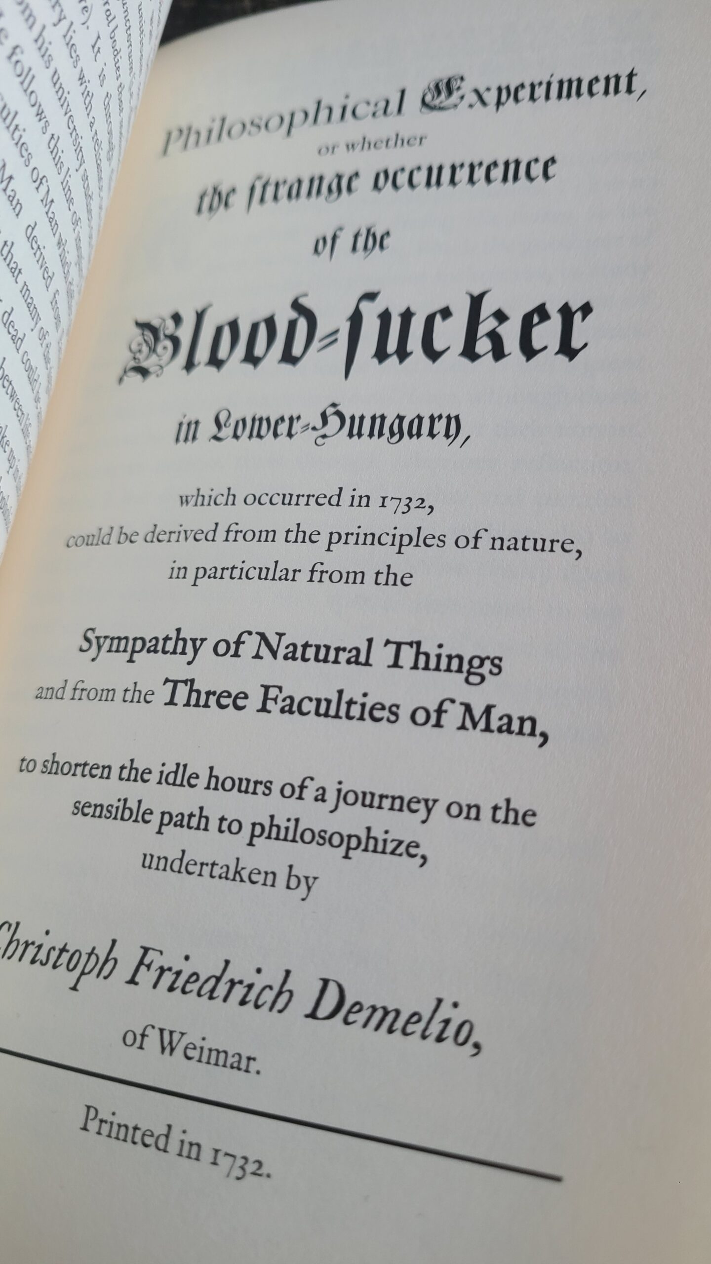 - Christoph Demelio – Philosophical Experiment, or whether the Strange Occurrence of the Blood-Sucker in Lower Hungary, which occurred in 1732, could be derived from the principles of nature, in particular from the Sympathy of Natural Things and from the Three Faculties of Man, etc. (1732)