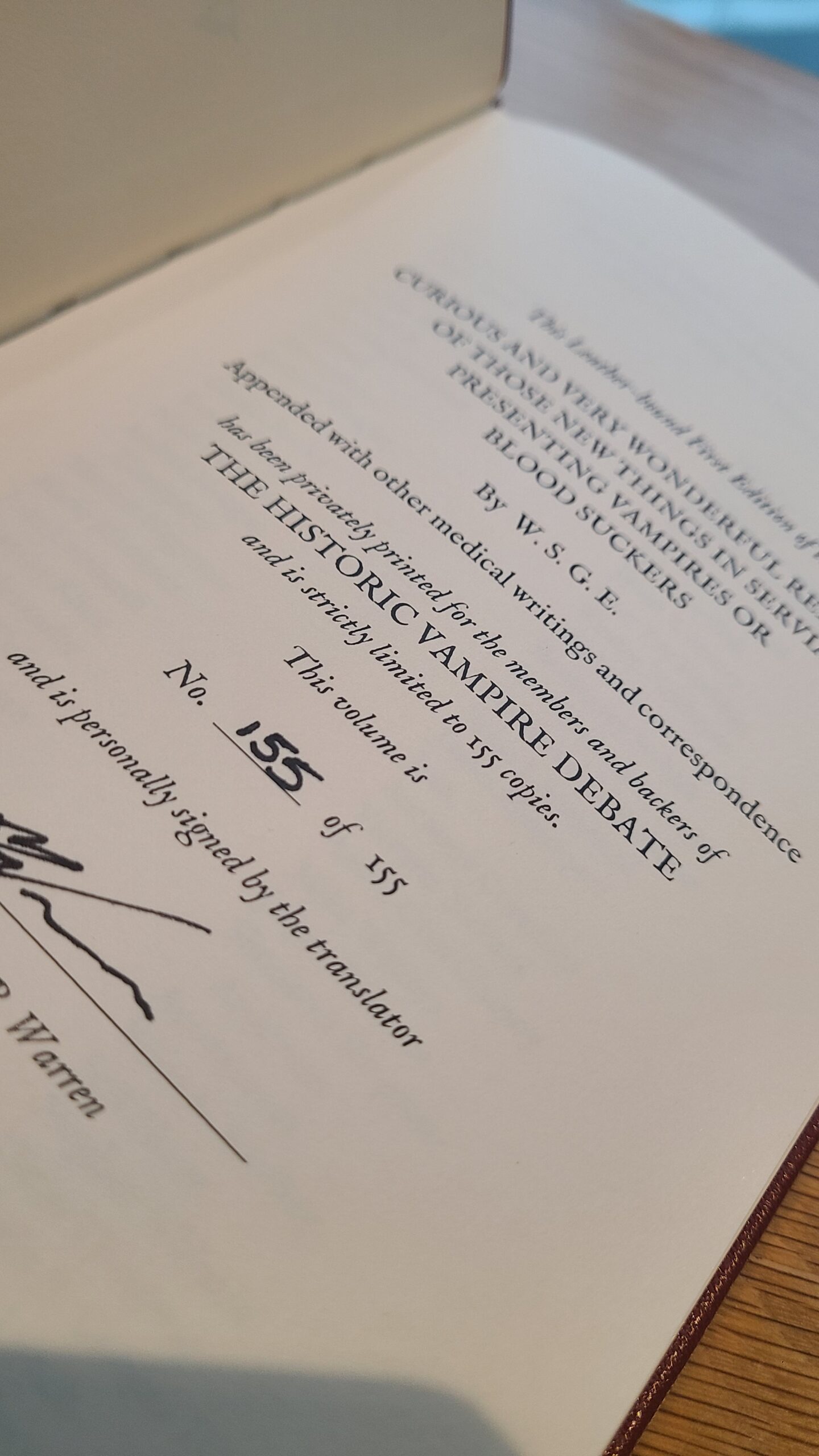 The Historic Vampire Debate: Volume Medicine (1732) Signed Leatherbound First Edition