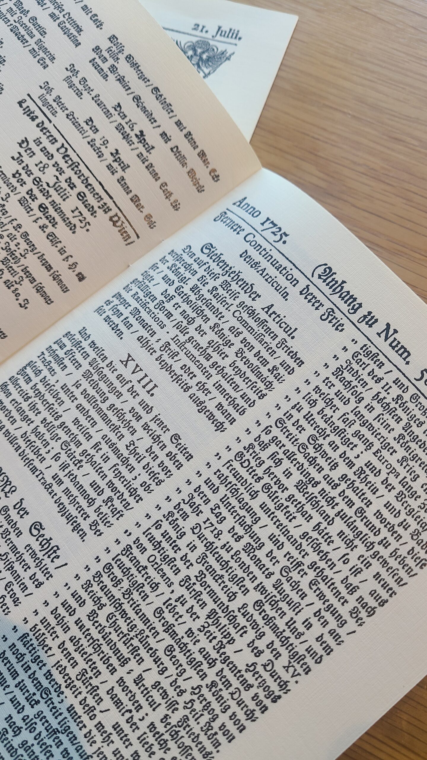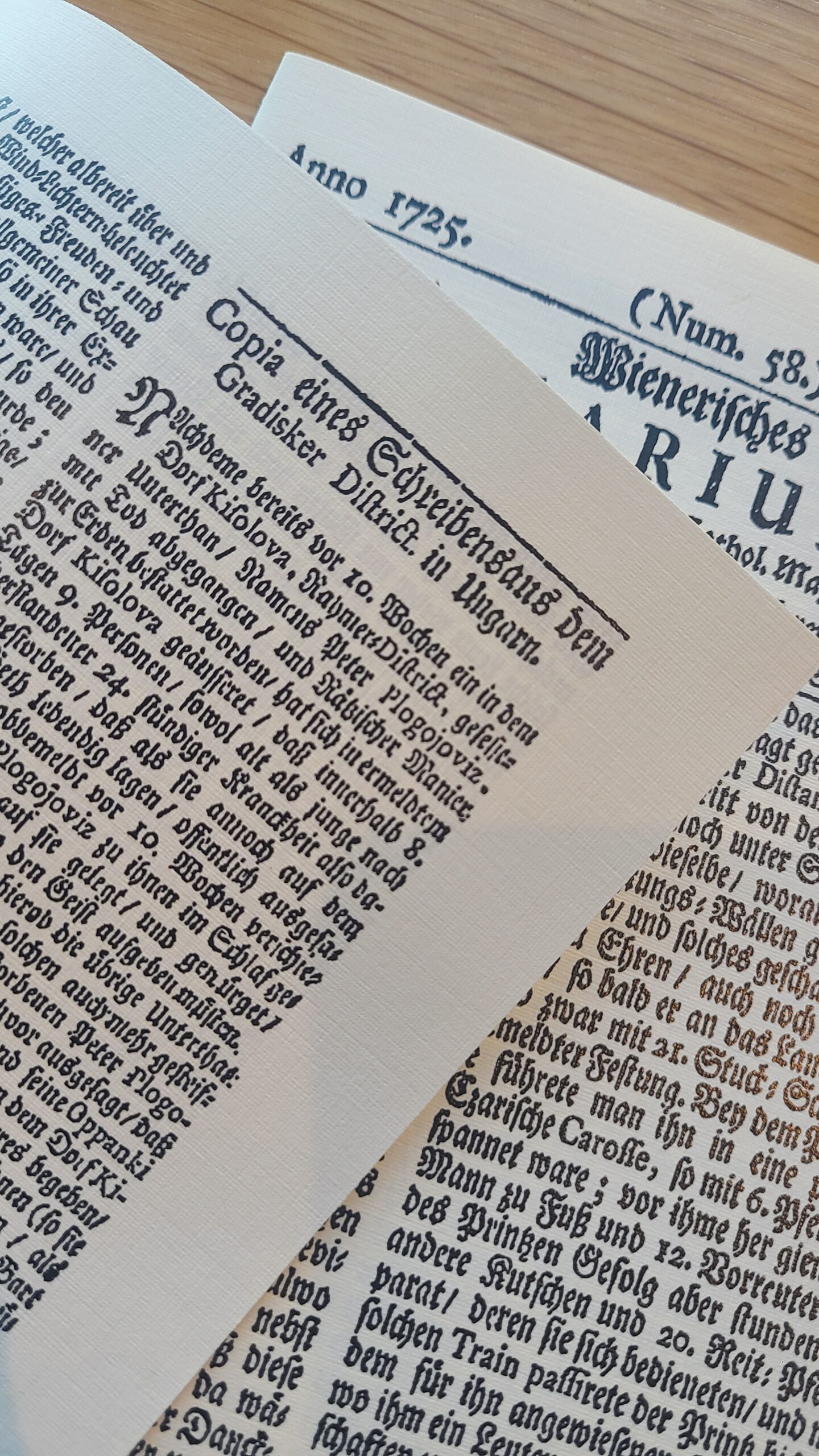 Wienerisches Diarium (Num. 58.) 21. Juli. 1725 (German Replica)