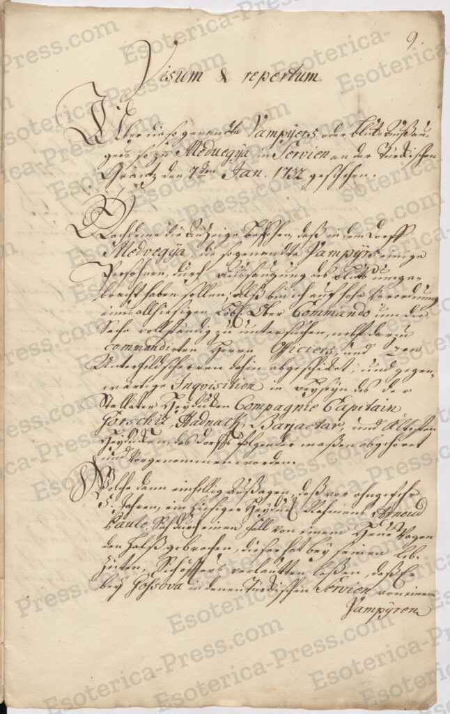 In the year 1732, an infamous report detailing the inquisition of a purportedly magical plague in the Kingdom of Serbia had sparked the greatest international controversy of the day. The report was signed and sealed by several imperial officials from the military regiments of both Prince Charles Alexander and Baron Furstenbush, narrating the circumstances surrounding an event of mass sudden death in the village Medvedja. Within a span of 2 months, 17 persons succumbed to a mysterious plague, declaring on their deathbeds of being ravaged and suffocated by specters of the recently deceased, then dying within a few days of it. As the deaths occurred in such a rapid succession, medical feldscher traveled to the rural village of Medvedja to interview the locals and conduct visitations of the 13 exhumed bodies that were alleged to be affected. Strange phenomena where observed. A number of them were discovered to be without the slightest stain of a natural human bodily decay, being fresh and incorruptible even in a period of months after their death and burial. Meanwhile, other bodies that were buried in a much shorter duration were discovered with advanced stages of decay. Upon examination and dissection of the incorruptible bodies, the physicians observed the shedding of old skin with fresh skin underneath, the growth of hair, nails, and teeth, liquid blood within the heart cavity, and with the interior organs in seemingly healthy condition. As the locals delineated the phenomena observed upon the incorruptible bodies as signs of an ancient evil, they implored the imperial authorities to permit the execution of these dead to rid the village of this maleficence of a magical plague. Upon the execution of such incorruptible dead, a body was said to groan and spit out blood upon a stake being driven into his heart, referencing the case of Arnold Paole who was executed in such a manner 5 years earlier. The report quickly spread throughout Europe and a controversy was quickly born when several figures of imperial nobility directly decreed for a scholarly investigation be carried out.